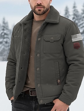Miesten Yhdysvaltain Yhdysvaltain lippu Fleecetakki Cargo takki Sherpa takki Pidä lämpimänä Vintage Vapaa-aika ulko- Koti Useita taskuja Puuvillatakit Talvitakit Syksy Talvi Fleece-taittokaulus
