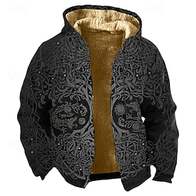 Miesten Kuvitettu Geometrinen Huppari Takki Böömi Muoti Katutyyli Vapaa-aika Pitkähihainen Hupullinen ulko- Urheilu ja ulkoilu Bile Harmaa Tasku Painettu Fleece Talvi Suunnittelija S M L XL 2XL 3XL