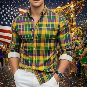 Karnevaali Miesten Kuvitettu Skottiruutukuvio Paita Napita paita Rantapaita Pitkähihainen Havaijilainen Vapaa-aika Mukava Loma Pyhäpäivä Mardi gras Kesä Kevät Sänkyjen avaus Tulostus Keltainen
