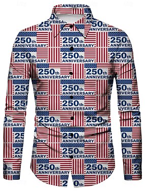 Amerikan itsenäisyyspäivä Miesten Kuvitettu Yhdysvaltain 250-vuotisjuhla 4. heinäkuuta Amerikan lippu Paita Napita paita Havaijilaiset paidat Pitkähihainen Vintage Vapaa-aika Rantatyyliä ulko- Loma