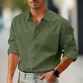 Miesten Paita Rento paita Rantapaita Button Up paita Seersucker paita Musta Valkoinen Apila Pitkähihainen Yhtenäinen väri Tavallinen Sänkyjen avaus Loma Kausaliteetti Tasku Vaatetus Muoti
