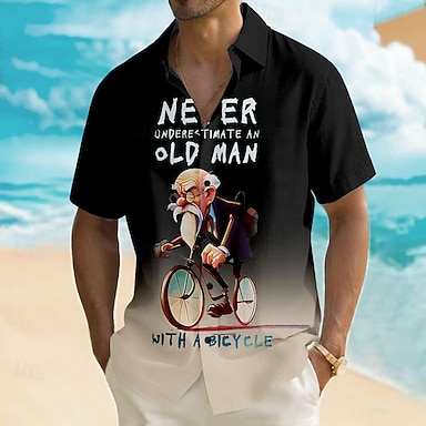 Älä koskaan aliarvioi vanhaa miestä polkupyörän kanssa miesten hauska pyöräilymoottoripyöräilijä 3D-sarjakuvakarikatyyri graafinen t-paita lyhythihainen pyöreä kaula-aukkoinen sinivihreä liukuvärjäys