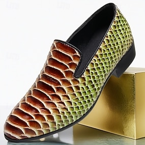 Miesten vihreät ja ruskeat käärmekuvioiset nahkaiset loaferit, slip-on-muodinmukaiset kengät yökerhoihin, juhliin ja rohkeisiin muotilausuntoihin