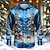 Christmas Miesten Joulupukki Joulukuusi Poro Paita Satiini paita Pukupaita Pitkähihainen Muoti rento ulko- Juhla Pyhäpäivä Kevät Syksy Sänkyjen avaus 3D-tulostus Napitettavat paidat Sininen 2