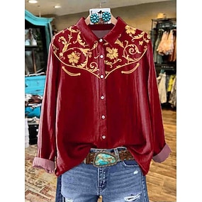 Naisten Paita Pellavamaista Hengittävää Kevyttä Napilla Kiinnitettävää Tunic Paitapuseroa Kaulalla Pitkät Hihat Kukka Graafinen Lännen Rento Tavanomaiset Paidat Työ Päivittäinen Printti