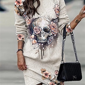 Naisille Hupparimekko Kalloja Printti Mini Mekko Kietaisumekko Juhlat Boho Puolivirallinen Virallinen Ulkoilu Kukkagraafinen Kallo Pitkähihaista Turtleneck Musta Aprikoosi Kevät Syksy Talvi