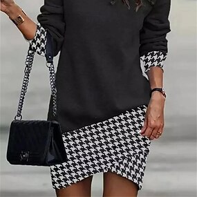 Naisten collegepaita mekko mini mekko kietaisumekko juhlat rento boho muodollinen ulkona koti normaali istuvuus yksivärinen geometrinen ruudullinen pitkähihainen korkea kaulus musta kevät syksy talvi