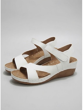 Naisten valkoiset mukavuussandaalit – kevyet avokärkiset sandaalit, joissa säädettävä takaremmi jokapäiväiseen käyttöön