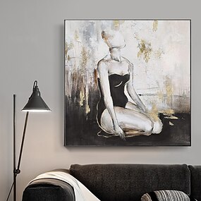 käsintehty öljymaalaus kankaalle seinälle mustavalkoinen hahmo abstrakti kodin sisustukseen venytetty kehys roikkuva maalaus/rullattu kehyksetön venyttämätön maalaus