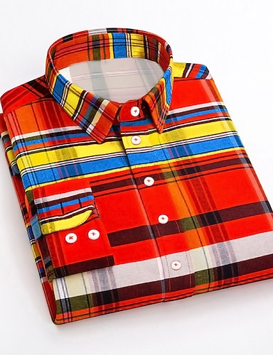 Miesten Pukupaita Tarkista paita Kauluspaita Ruutu / skotti Häät Loma Sininen Keltainen Rubiini Vihreä Pitkähihainen Sänkyjen avaus 봄 & Syksy Vaatetus Painike alas