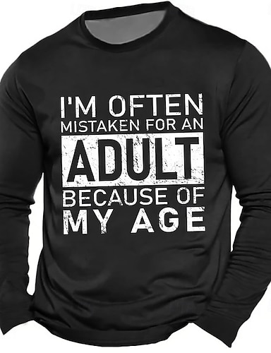 Miesten Hauska Graafinen Lyhythihainen T-paita - 'Minua erehdytään usein aikuiseksi ikäni takia' Humoristinen T-paita