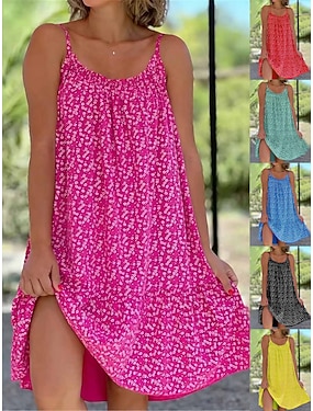 Naisten Rantamekko Rantavaatteet Mini mekko Painettu Trooppinen Muoti Kukka Spagettiolkaimet Hihaton Loose Fit ulko- Päivittäin Musta Keltainen 2023 Kesä Kevät S M L XL