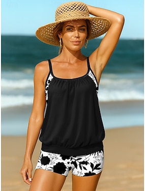 Naisten Uima-asut Tankini 2 kpl Uimapuku Loma Vintage Hihaton Uimapuvut