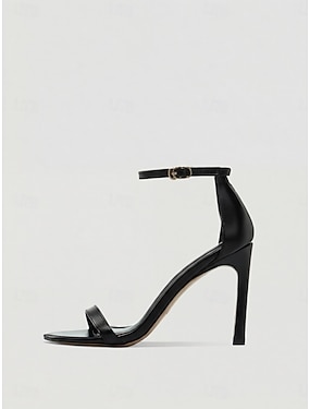 naisten mustat minimalistiset stilettosandaalit, avoin kärki, nilkkaremmi, korkokengät cocktail-juhliin, iltatilaisuuksiin &muodolliset tilaisuudet