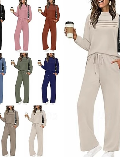 Naisten Verryttelypuku Housusarjat Pitkähihainen Tiukka pyöreä kaula-aukko Raidoitettu Tyylikäs Muoti Katutyyli Kausaliteetti Päivittäin ulko- Sininen Musta Rubiini Kesä Loose Fit