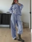 Naisten Bleiseri Leveät housut Pitkähihainen Paitapuserokaula-aukko Raidoitettu Tilkkutäkki Päivittäin Musta Valkoinen Khaki 봄 & Syksy Normaali