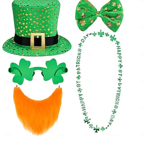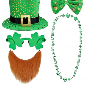 unisex Pyhän Patrickin päivän leprechaun-hattu, vihreä apilanlehti-tonttutyylinen pukuhattu, pehmeä polyesterimateriaali, hauskat irlantilaiset festivaalijuhlapäähineet miehille ja naisille