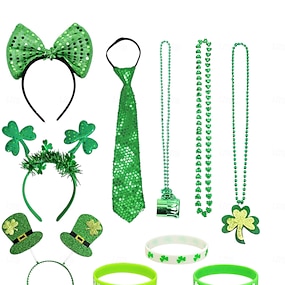 naisten Pyhän Patrickin päivän apilahattu, bandana &lasisetti – vihreät höyhenet, juhlavia asusteita juhliin ja paraateihin