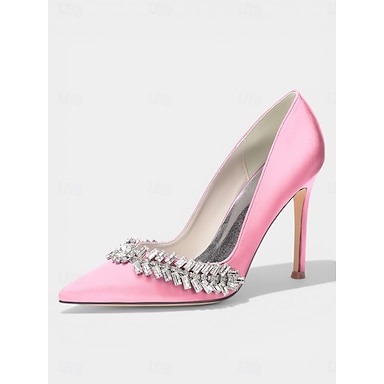 naisten violetit satiinista teräväkärkiset korkokengät, strassilla koristellut stilettokorkokengät cocktailjuhliin, häihin &iltatapahtumat