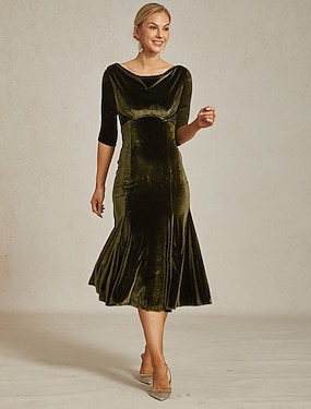 Mekko pylväs nilkkapituinen juhlapuku cocktail-puku hääkutsuvieraalle äidin morsiammelle puku pitkähihainen V-kaula-aukko tyylikäs vintage-virallinen värilohkolla