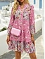Naisten Mini mekko Boho-mekko Kesämekko Rantamekko Loma Katutyyli Loma Katu Pyhäpäivä Normaali Kukka Pitkähihainen Halkaistu kaula Sininen Punastuvan vaaleanpunainen Apila Kesä Kevät