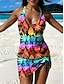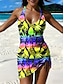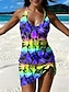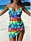 Naisten Uima-asut Tankini Hame Uimapuku Tyylikäs Loma Kuvitettu Trooppinen Riipuskaula Hihaton Uimapuvut