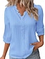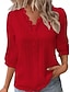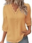 Naisten Paita Pusero Pitsi Topit Nauhanreikä Tavallinen Tyylikäs Klassinen Moderni 3/4 hiha V kaula-aukko Tavalliset topit Päivittäin Pyhäpäivä Bile Musta Valkoinen Keltainen Rubiini Apila Kesä Kevät