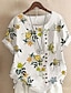 Naisten Paita Pusero Keinopuuvillainen pellava Painettu Tavallinen Aktiivinen Tyylikäs 3/4 hiha Tiukka pyöreä kaula-aukko Tavalliset topit Päivittäin Pyhäpäivä Bile Valkoinen Keltainen Punastuvan