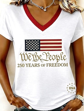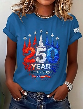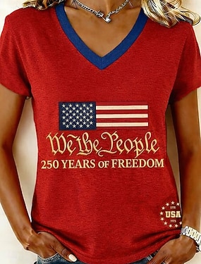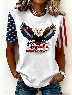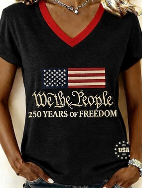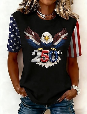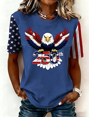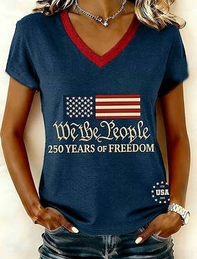 Itsenäisyyspäivä Patrianottinen Naisen T-paita Printti Graafinen Kirjain Amerikkalainen lippu Tyylikäs Klassinen Rentouttava Lyhythihainen Pyöreä kaula Normaalit Huippu Päivittäinen Sininen Musta