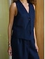 Naisten Pusero Keinopuuvillainen pellava Tilkkutäkki Napit Tavallinen Tyylikäs Moderni Vapaa-aika Hihaton V kaula-aukko Tavalliset topit Päivittäin Pyhäpäivä Bile Laivaston sininen Kesä Kevät