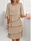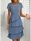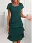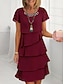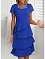 Naisten Midimekko Valmistujaismekko Coctail-asu Häävieraspuku Sifonki Mekko Tyylikäs Juhla Häävieras Cocktailjuhla Normaali Lyhythihainen Tiukka pyöreä kaula-aukko Sininen Viini Kameli Apila Kesä