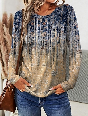 Naisten T-paita Pitkähihainen Pyöreä Kaula-aukko Pitkähihainen Tunika Ombre Graafinen Rentoa Säännölliset Paidat Päivittäinen Printti Khaki Kevät Syksy Ennen Syksyä