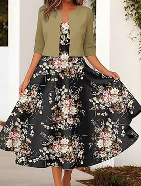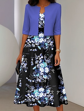 Naisten kaksiosaiset mekot midi-mekko takilla elegantti A-linjainen mekko puolihihainen rento puolimuodollinen ombre kukkaprintti V-kaula-aukko treffit vaaleanpunainen sininen purppura säännöllinen