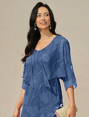 Naisten Midimekko Coctail-asu Sifonki Mekko Kukka mekko Painatus mekko Muoti Moderni ulko- Loma Teekutsut Normaali Kukka Lyhythihainen V kaula-aukko Sininen Apila Vaalean sininen Kesä