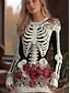 Naisten Polvipituinen mekko Neulosmekko Rento mekko Tpaitamekko A linjainen mekko Loma Vapaa-aika Juhla Normaali Kukka Kuvitettu Pääkallot Pitkähihainen Tiukka pyöreä kaula-aukko Musta Kevät Syksy