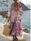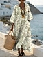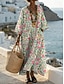 Naisten Maksimekko Väljä mekko Vapaa-aika Hiekkaranta Bile Loose Fit Kukka Kuvitettu Pitkähihainen V kaula-aukko Vaalea vaaleanpunainen Vaalean vihreä Beesi Kesä Kevät