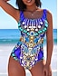 Naisten Uima-asut Yksi kappale Monokini Alushousut Uimapuku Vatsatuki Korkea vyötärö Ohut Neule Avoin selkä Tyylikäs Loma Kuvitettu Paisley-kuvio U kaula-aukko Hihaton Uimapuvut