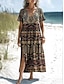 Naisten Midimekko Tpaitamekko Kesämekko Väljä mekko Loma Vapaa-aika Boheemi Hiekkaranta Juhla Normaali Kuvitettu Etninen Lyhythihainen V kaula-aukko Tumman ruskea Kesä Kevät