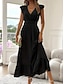 naisten häävieras cocktailmekko sifonki yksinkertainen röyhelö kierretty tyylikäs kesämaksimekko v kaula levenevä 3/4-hiha
