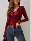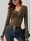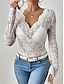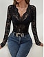 Naisten Pitsipaita Pusero Yhtenäinen väri Tyylikäs Seksikäs Vapaa-aika Pitkähihainen V kaula-aukko Tavalliset topit Päivittäin Pitsi Tilkkutäkki Musta Valkoinen Viini Armeijan vihreä Laivaston sininen