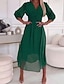 Naisten Maxi Mekko Pleatattu Mekko Boho Juhlapäivä Ulkona Säännöllinen Fit Kallo Pitkähiha V-kaula Musta Viini Syksy Talvi