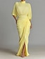 Naisten Pitkä mekko Maxi mekko Tanssiaispuku Juhlamekko Tyylikäs Muoti Moderni Juhla Erikoistilaisuus Iltajuhlat Normaali Tavallinen 3/4 hiha poolokaulus Keltainen Kevät Syksy Talvi