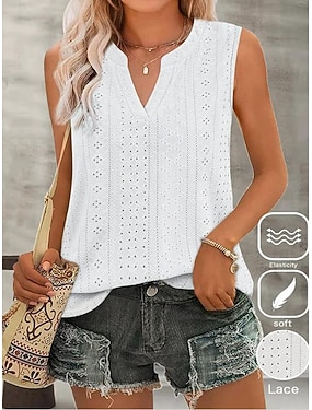Naisten Pointelle-paita Silmukan yläosa Pitsipaita Lyhythihainen Tiukka pyöreä kaula-aukko Kausaliteetti Päivittäin Hiekkaranta Valkoinen Punastuvan vaaleanpunainen Purppura Apila Kesä