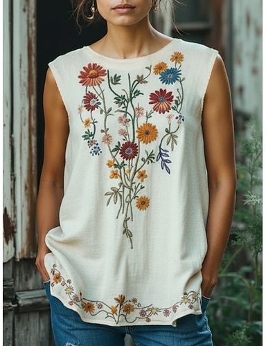 Amerikan itsenäisyyspäivä Naisten Boho T-paita T-paita Hihaton paita Painettu Kukka Kuvitettu Böömi Vintage Hihaton Tiukka pyöreä kaula-aukko Tavalliset topit Päivittäin Viikonloppu Musta Valkoinen