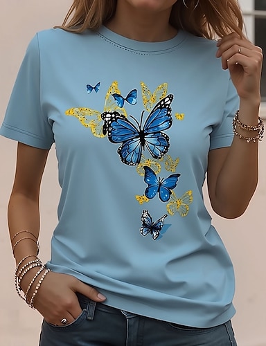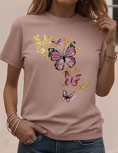 Naisten T-paita Painettu Kuvitettu Eläin Perhonen Vintage Tyylikäs Klassinen Lyhythihainen Tiukka pyöreä kaula-aukko Pyöreä kaula-aukko Tavalliset topit Päivittäin Viikonloppu Punastuvan