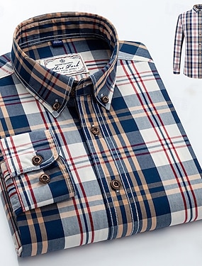 Miesten Paita Rento paita Button Up paita Puuvillainen paita Happopesupaita Sininen khaki Kahvi Pitkähihainen Tavallinen Paitapuserokaula-aukko Kausaliteetti Päivittäin Edessä tasku Vaatetus Tyylikäs