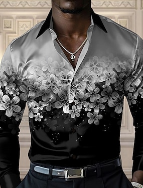 Miesten Paita Satiini paita Pukupaita Button Up paita Kukka Juhla-iltavaatteet Rubiini Sininen Kulta Harmaa Pitkähihainen Sänkyjen avaus Kesä Kevät Vaatetus Painike ylös