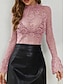 Naisten Pitsiliitostoppi Pusero Tavallinen Vintage Tyylikäs Pitkähihainen V kaula-aukko Tavalliset topit Päivittäin Pyhäpäivä Bile Pitsi Rypytetty Tilkkutäkki Valkoinen Punastuvan vaaleanpunainen