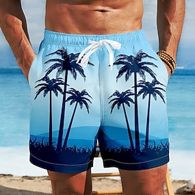 Miesten Kookospuu Kaltevuusväri Uimahousut Uimapuvut Uimahousut Surffishortsit Keskivyötärö Havaijilainen Rantaloma Sivutaskut Verkkovuori Joustava kiristysnyöri vyötäröllä Suunnittelija Vaatetus