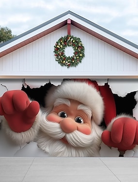 jouluinen autotallin oven suojus joulupukki seinän läpimurto suuri roikkuva tausta ulkoloman seinäbanneri piha koti juhlava 3d juhlakoristelu kausiluonteinen joulunäkymä